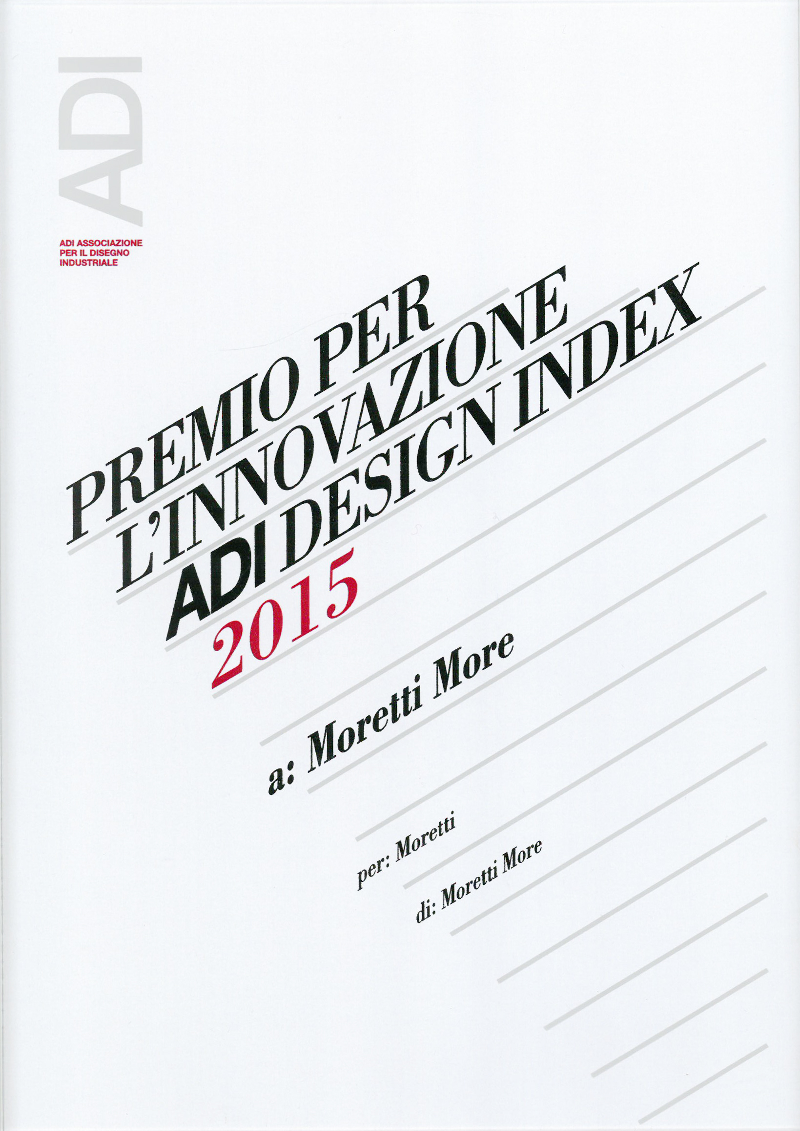 Attestato del Premio per l’innovazione ADI Design Index 2015 a Moretti More